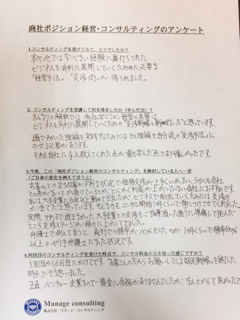 「商社ポジション経営」についてご紹介をさせていただきましたが、ご理解いただけましたでしょうか。